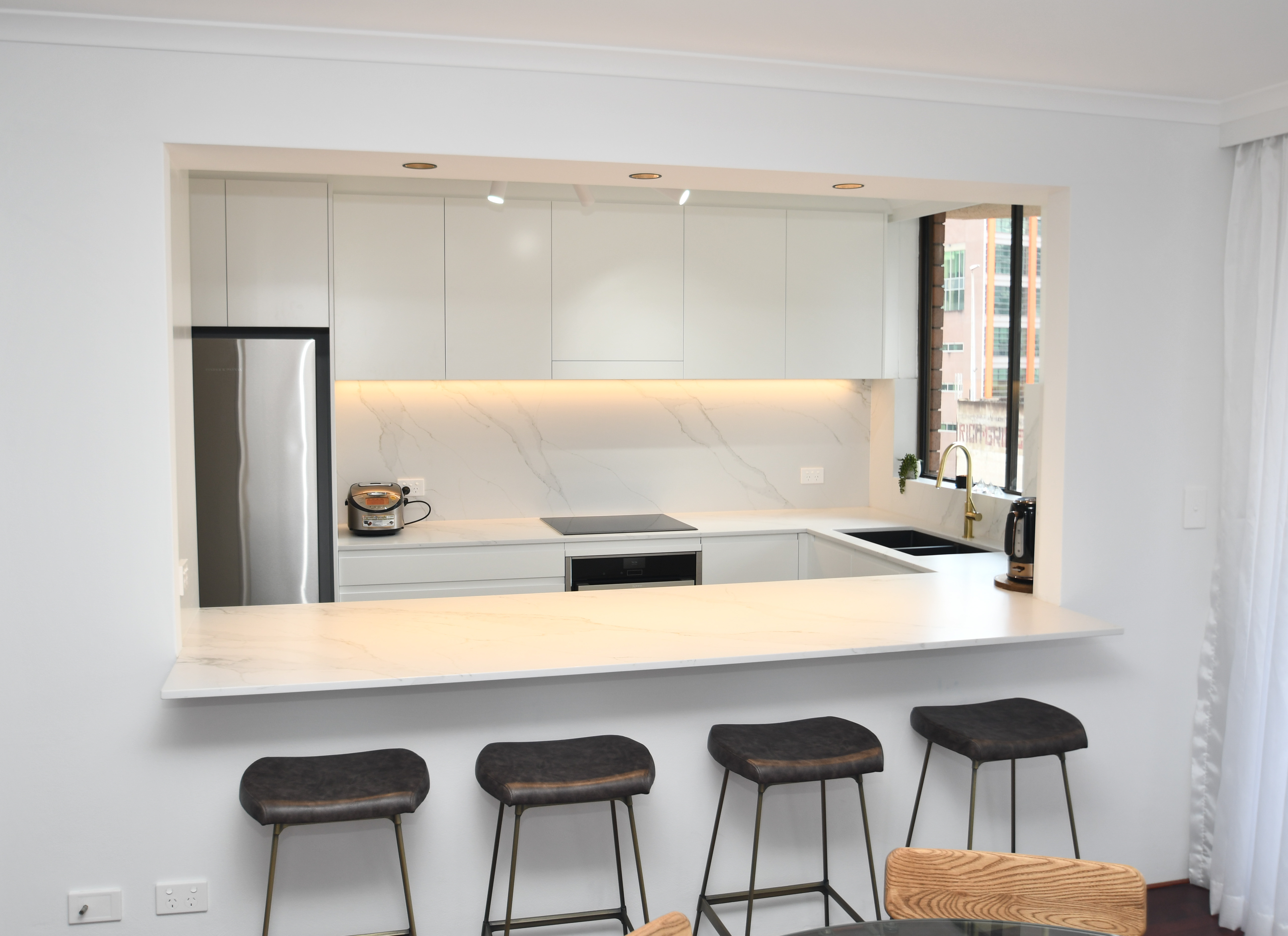 If minimalism is your thing, or you want to deter little fingers pulling open kitchen drawers, why not consider streamlined handless modern kitchen cabinets? Their sleek, timeless design means you won’t feel pressured to replace them in a few years.